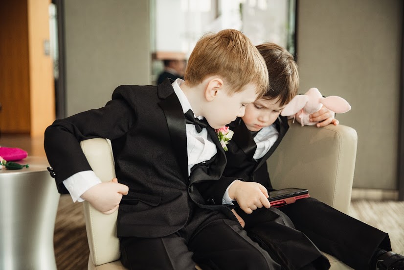 Here are our boys, waiting in the hotel lobby for all the festivities to begin. It really captures the two boys personalities. Dante, anxious and buttoned up. Adrian, restless and loose.